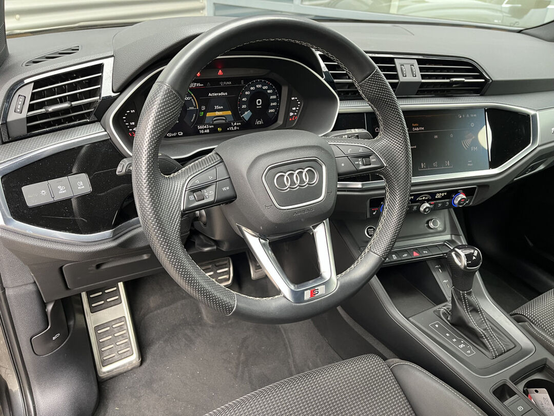 Strakke lijnen en klassieke vormen die evenwichtig zijn geproportioneerd: de Audi Q3 Sportback is een stijlvolle en markante verschijning op de weg. Zijn krachtige motor en doordachte onderstel maken bovendien alle verwachtingen waar. Voor de echte liefhebber is de S-Line styling natuurlijk een dikke plus. Elektrisch rijden of benzine? Deze hybride Audi Q3 Sportback combineert de pluspunten van allebei naar keuze. Doe maar luxe! Neem plaats in de verwarmbare voorstoelen en voel de weldaad in koude dagen. Rijden met pit? Geen punt! De sportstoelen geven steun en stevigheid! De bagageruimte is toegankelijk via een comfortverhogende elektrische achterklep. Tot de voorzieningen van deze auto behoren 18 inch lichtmetalen velgen, Full LED koplampen, halflederen bekleding, warmtewerend glas, in delen neerklapbare achterbank en LED-achterlichten.