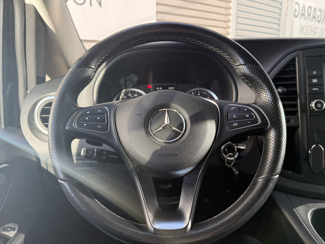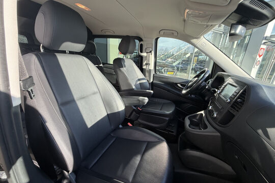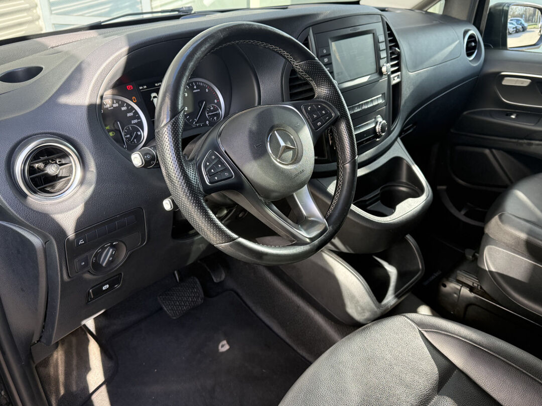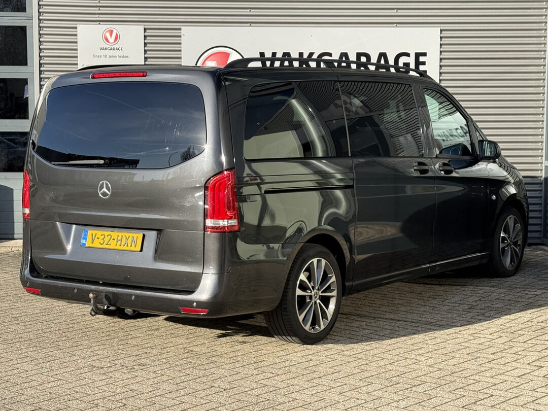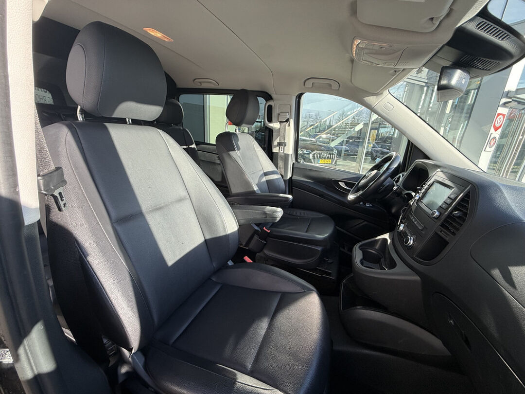Het stijlvolle design van deze auto, de elegante contouren, zijn onmiskenbare rijcomfort en zijn krachtige motor maken van deze Mercedes-Benz Vito een auto die u met trots zult bezitten. De aandrijving komt voor rekening van een dieselmotor en een automatische transmissie. Op koude dagen voelt u zich snel behaaglijk op de verwarmbare stoelen. Ook bij een wat krappere parkeerplek stappen passagiers gemakkelijk in en uit via de schuifdeur. Tot de uitrusting behoren ook 18 inch lichtmetalen velgen, LED koplampen, warmtewerend glas, trailer assistent en LED-achterlichten.