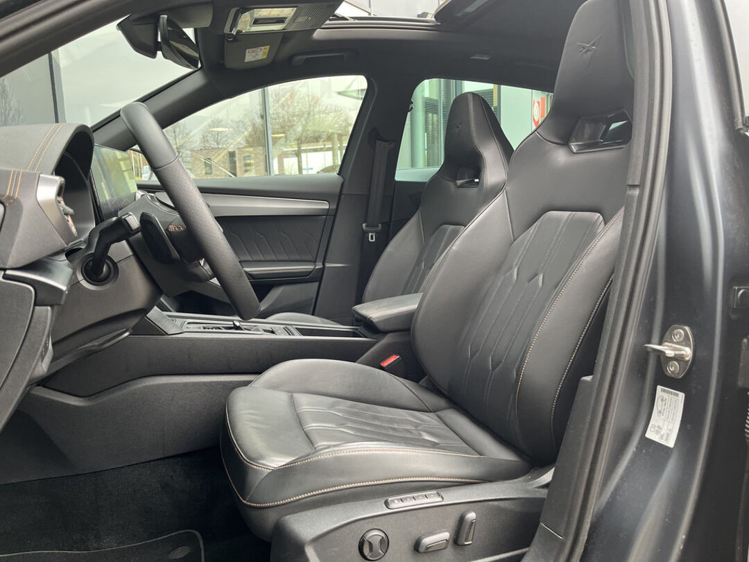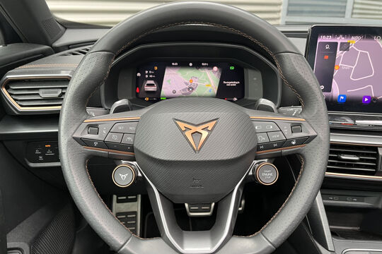 Met het digitale dashboard in deze auto kunt u de interface van uw cockpit personaliseren. Met de achteruitrijcamera ziet u precies wat er achter de auto gebeurt. Adaptive cruise control houdt de ingestelde snelheid vast en houdt afstand tot het voertuig voor u. Loopt het verkeer onderweg vast, schakel dan de file assistent in en laat het systeem zorgen voor de juiste afstand bij stilstaan en rijden. Met Connected Services wordt iedere rit nóg veiliger. Ook is de CUPRA uitgerust met: dashboard met spraakbediening, full map navigatiesysteem, achteropkomend verkeer waarschuwing, automatische airconditioning, schakelpaddles aan het stuur en draadloos opladen.